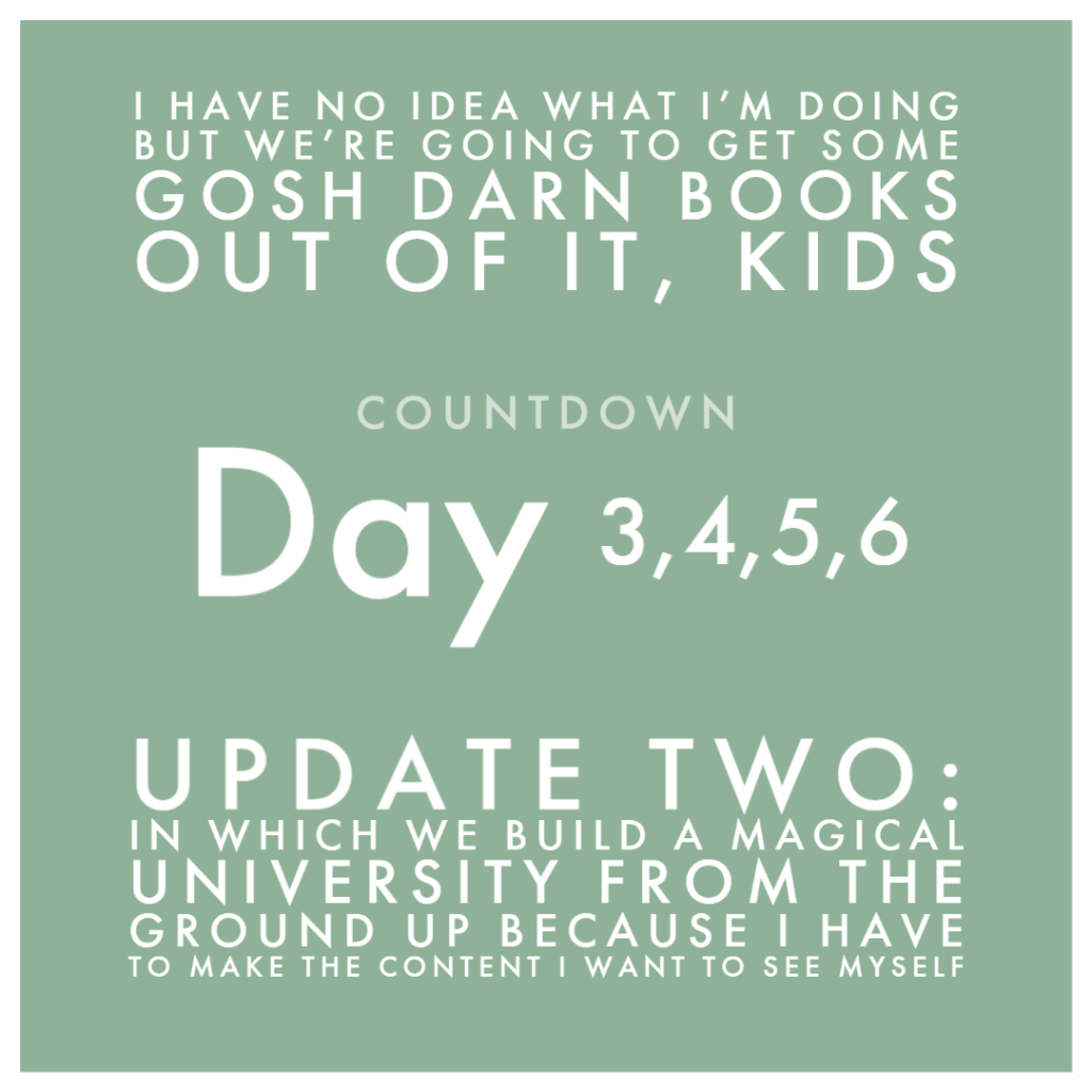 I didn’t realize that when I announced I was doing Nanowrimo stuff this round, I had announced it so close to doing a series preview for something else. So, naturally, I got a few messages in my inbox stating how excited people were for a magical academy series to be showing up shortly and I was like:
